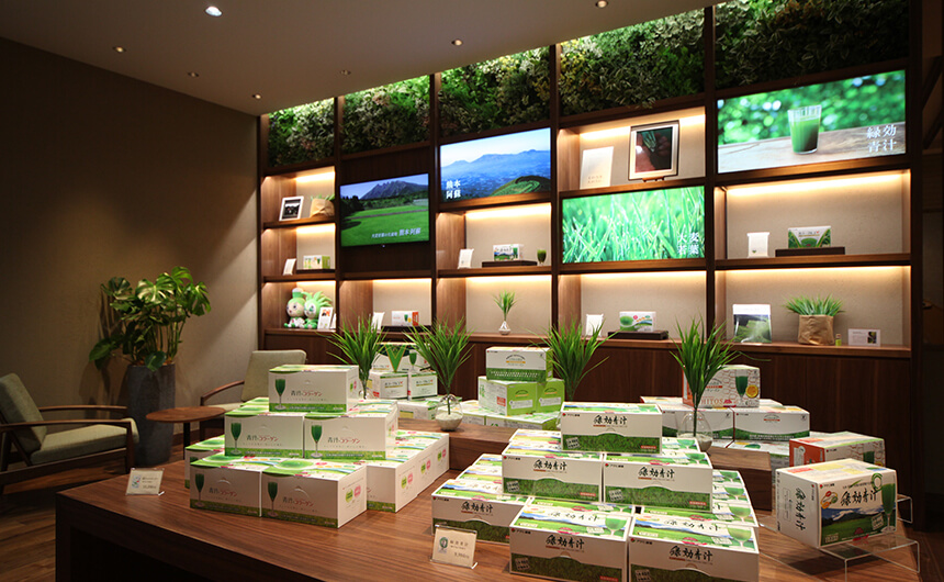 カフェの隣には緑効青汁をはじめ、アサヒ緑健の青汁を直接購入できる初の常設店舗もあります。こちらもぜひお越しください。